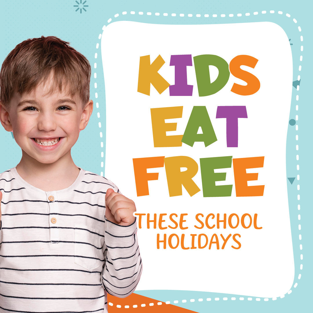Take advantage of our Kids Eat Free at lunchtime promotion available throughout the school holidays, it is the perfect excuse to go out for lunch.